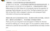 伊朗将恢复往返中国航班,涉及多条航线